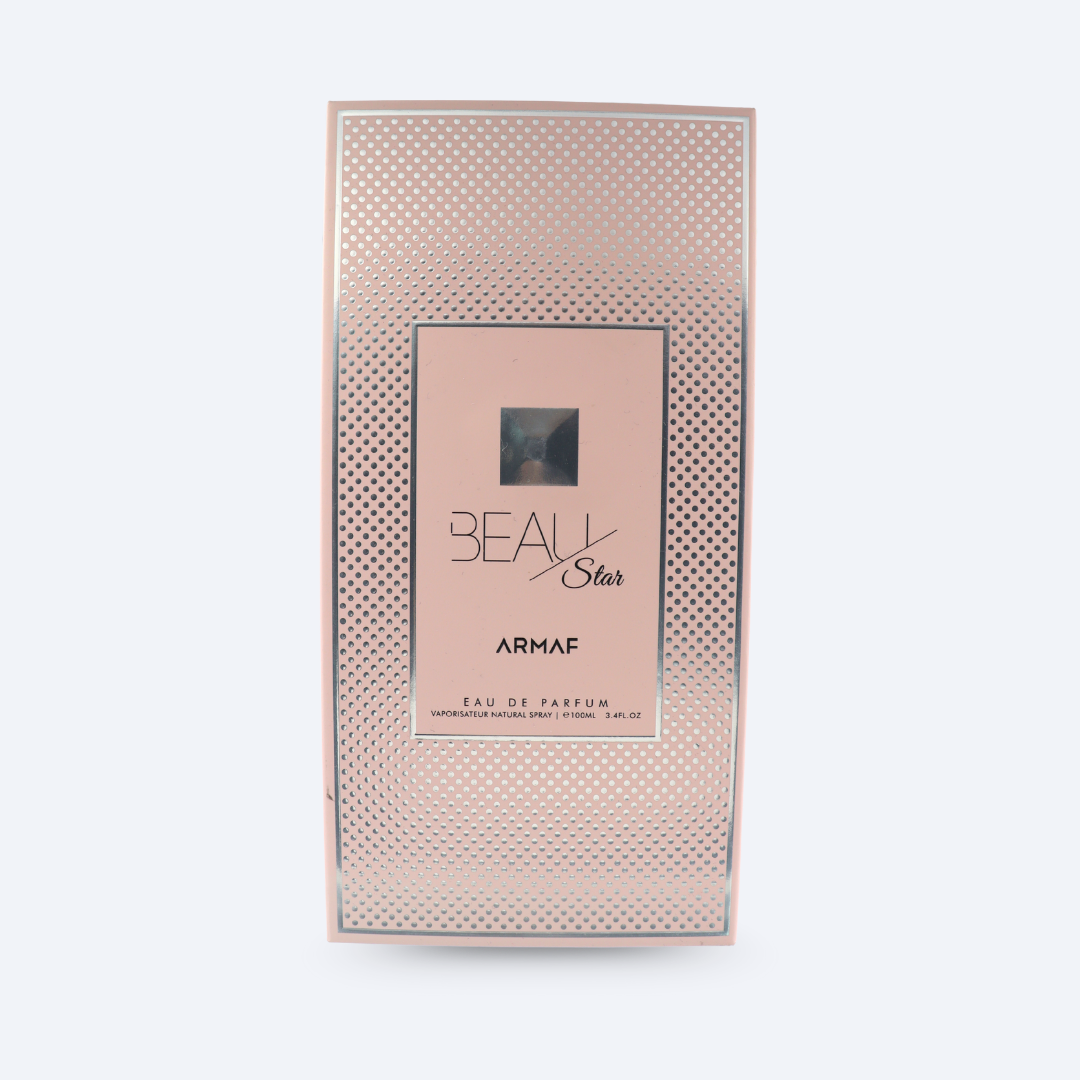 Armaf Beau Star Pink is a floral and fruity Eau de Parfum for women, with a vibrant opening of Apricot, Freesia, Green Apple, and Orange Blossom. It evolves into a sophisticated heart of Magnolia, Orris, Rose, and Jasmine, before settling into a warm and lasting base of Musk, Softwoods, Vanilla, and Amber. This fragrance offers a balanced and enduring scent, combining fruity, floral, and warm notes for a luxurious and sophisticated experience.
