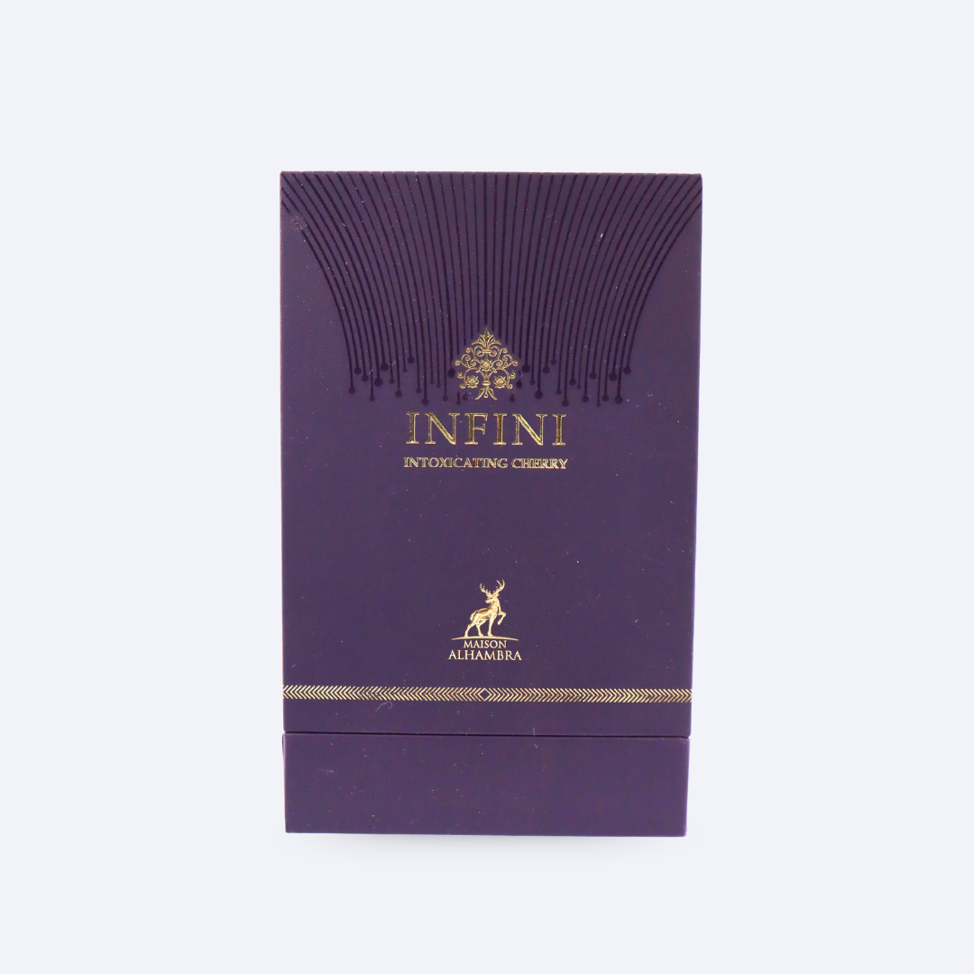 Infini Intoxicating Cherry by Maison Alhambra is a rich and provocative scent crafted for those who love bold, spicy warmth with a luxurious edge. This eau de parfum blends fiery spices with deep, woody accords, creating a fragrance that is both captivating and sophisticated. Its smooth, resinous finish, offers a warm embrace that lasts all day. Ideal for evening wear or special occasions, this scent adds an irresistible touch of mystery and confidence. A perfect choice for fragrance lovers who seek intensity, elegance, and depth in every spray.