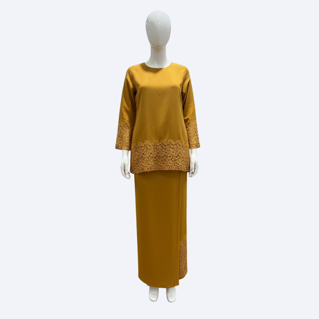 Baju Kurung Set Floral Lace in Mustard Yellow