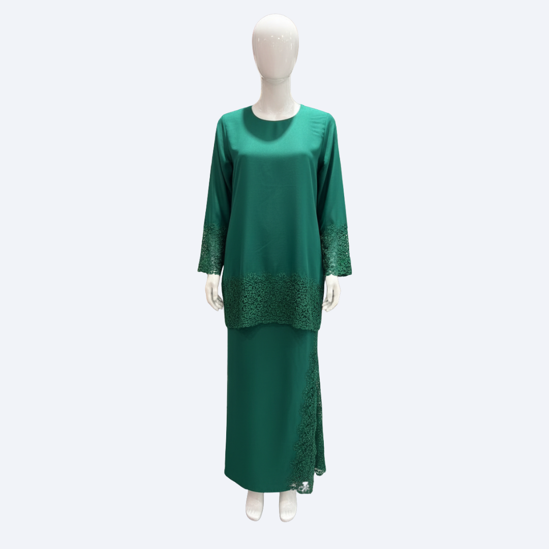 Baju Kurung Set Floral Lace in Emerald Green