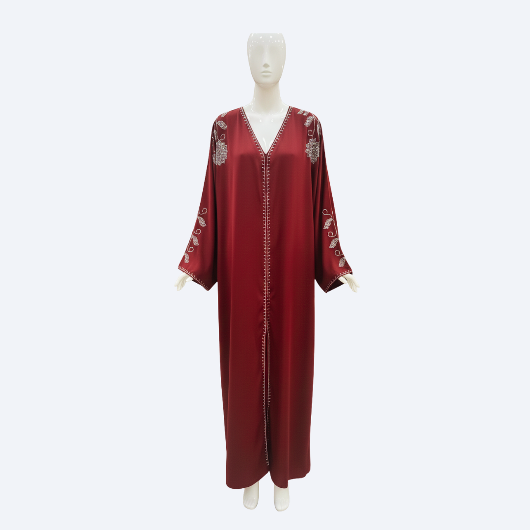 Jubah Manik Floral in Cherry Red