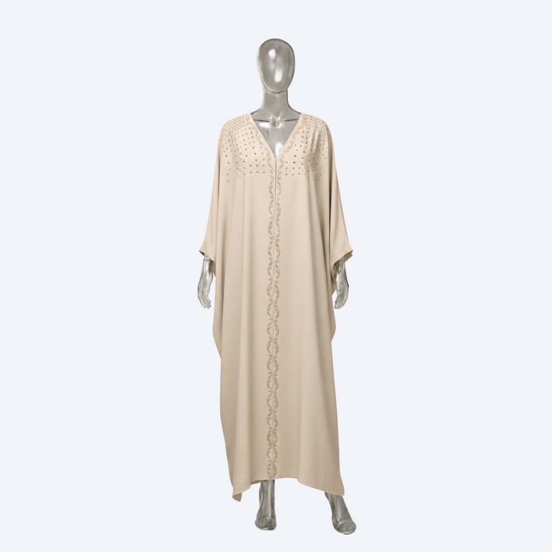Jubah Manik Floral Spread in Nude Brown
