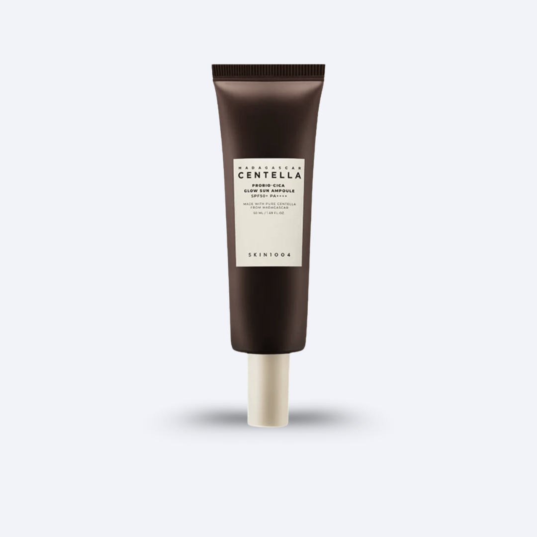 SKIN1004 - Madagascar Centella Probio-Cica Glow Sun Ampoule is an advanced sunscreen with SPF50+ PA++++ that protects your skin against both UVA and UVB rays. The lightweight, hydrating ampoule formula absorbs quickly without leaving a white cast, making it perfect for daily use – even under makeup.