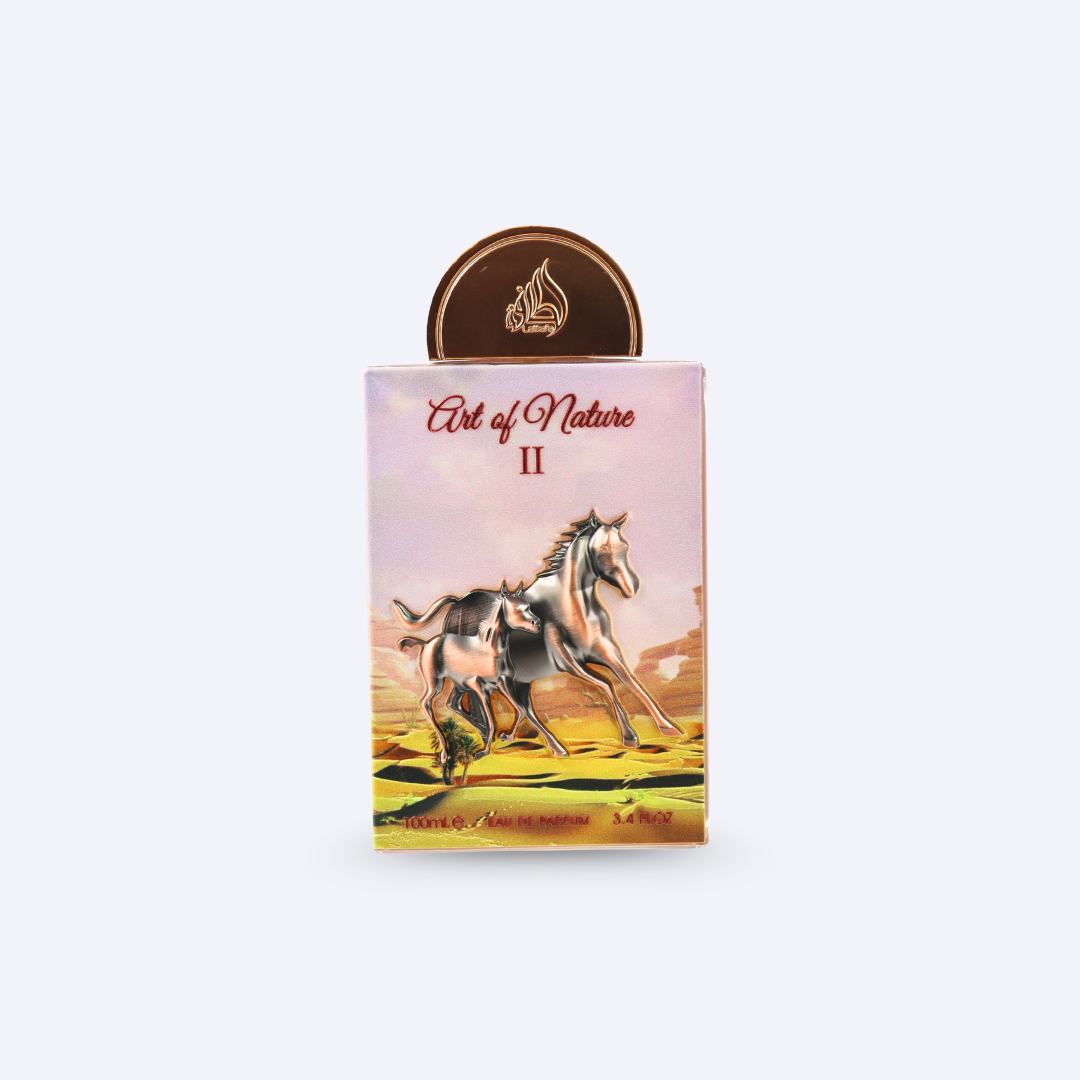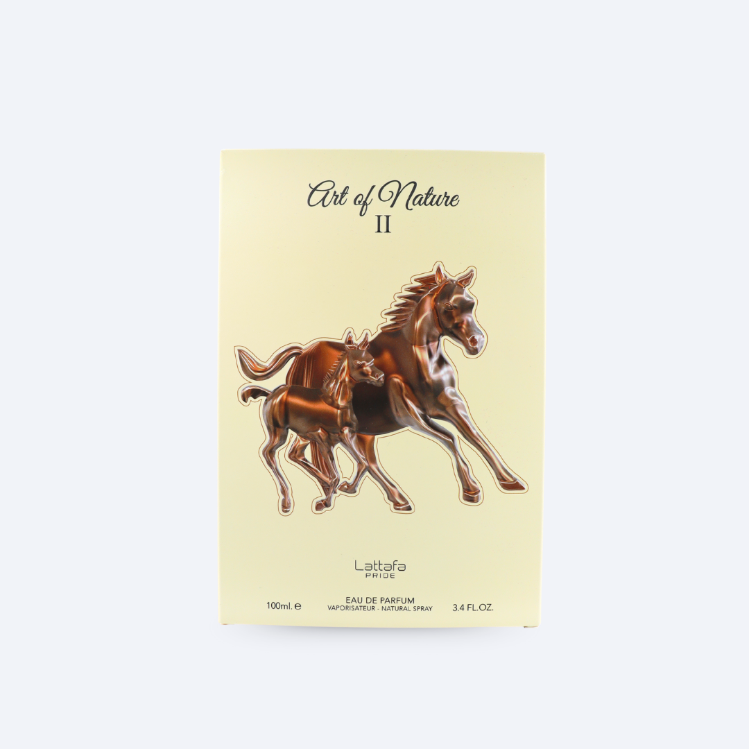 Lattafa Pride Art of Nature II is a refined unisex fragrance that harmoniously blends vibrant and sophisticated elements. It opens with a refreshing burst of bergamot, olibanum, mandarin, and apple, creating a bright and fruity introduction. The heart reveals a luxurious combination of orange blossom, rose, and cardamom, adding a floral and spicy richness. The fragrance settles into a warm and enduring base of vanilla, ambroxan, guaiac wood, cedarwood, and musk, providing a deep and sensual finish.
